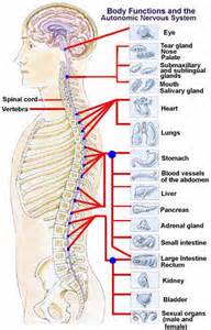 I saved the image on the left for last because of its critical significance regarding the spine and for those who have not been exposed to the spine, the main trunk connected to the brain that control every organ in the body. If you look close to the connection between the tributaries that exit out of the spinal canal between the vertebras you can get a sense of how important the health of the spine and vertebras are to your overall health. When you take in consideration how critical the health of the vertebras are in relation to the comfortable path of the nerves originating in the brain and continuing to govern the proper functioning of all of the organs in the body, you can readily see how a healthy spine is so critical to the process.