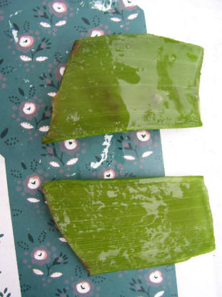 The first thing to do is cut along the sides of the leaf and remove the prickers illustration below left. They are lethal little buggers.