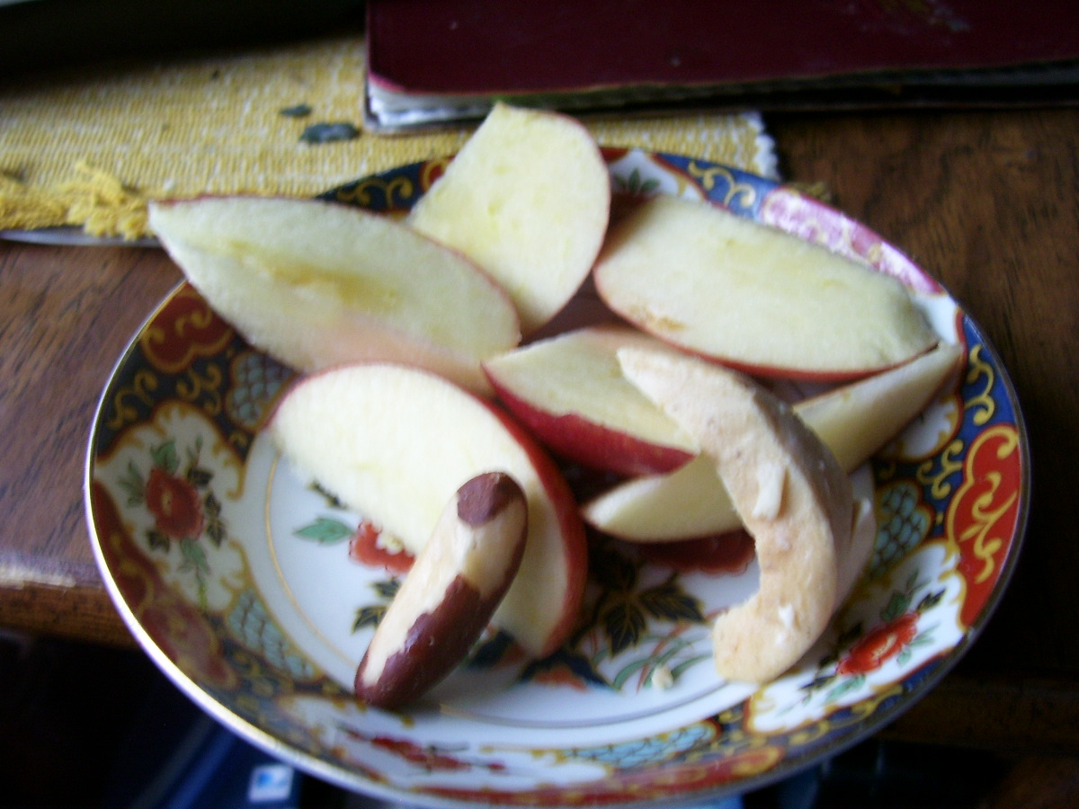 apple and slice off slivers of skin with some flesh. I set the slivers