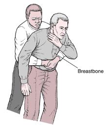 quick upward thrust. Do not squeeze the ribcage; confine the force of the thrust